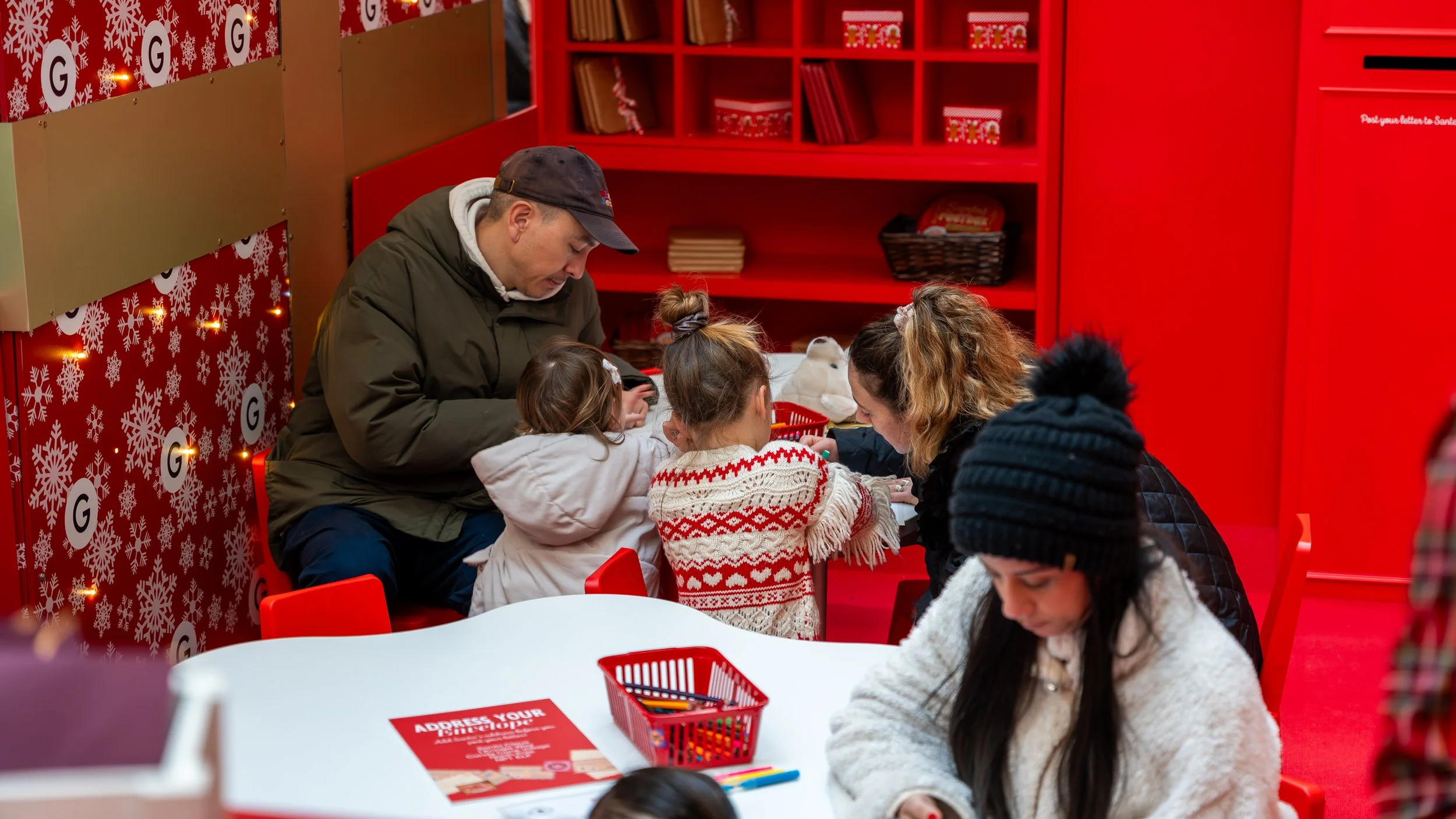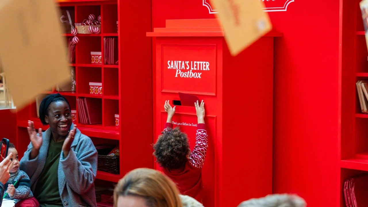 The North Pole Post Office was a story-led Christmas activation that invited families to step into a festive postal experience inspired by the North Pole. Children were welcomed by elf performers and guided through writing their letters before posting them into Santa’s special mailbox, creating a clear and engaging journey within the centre.
